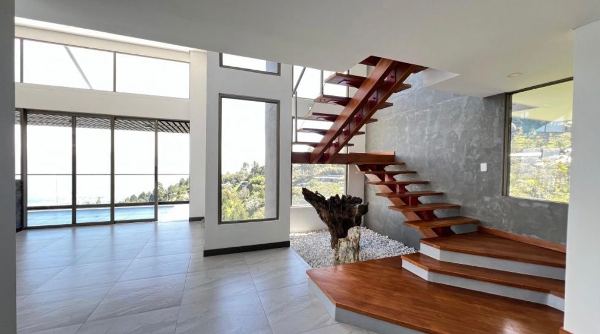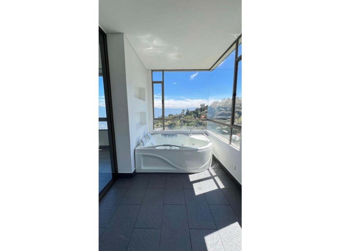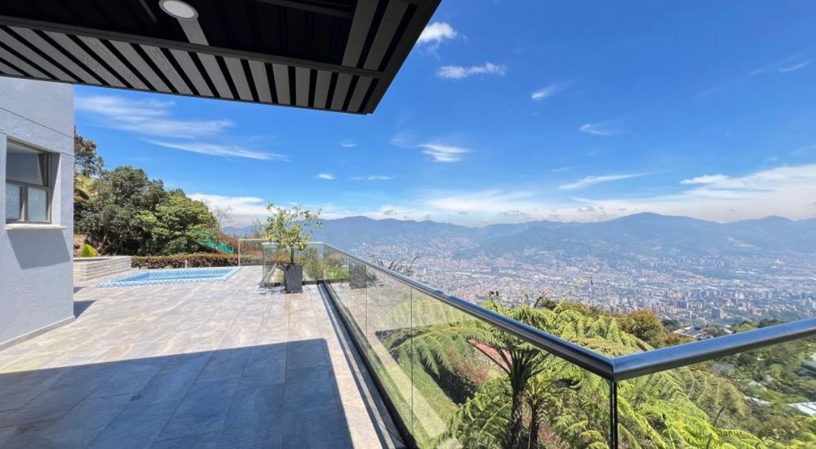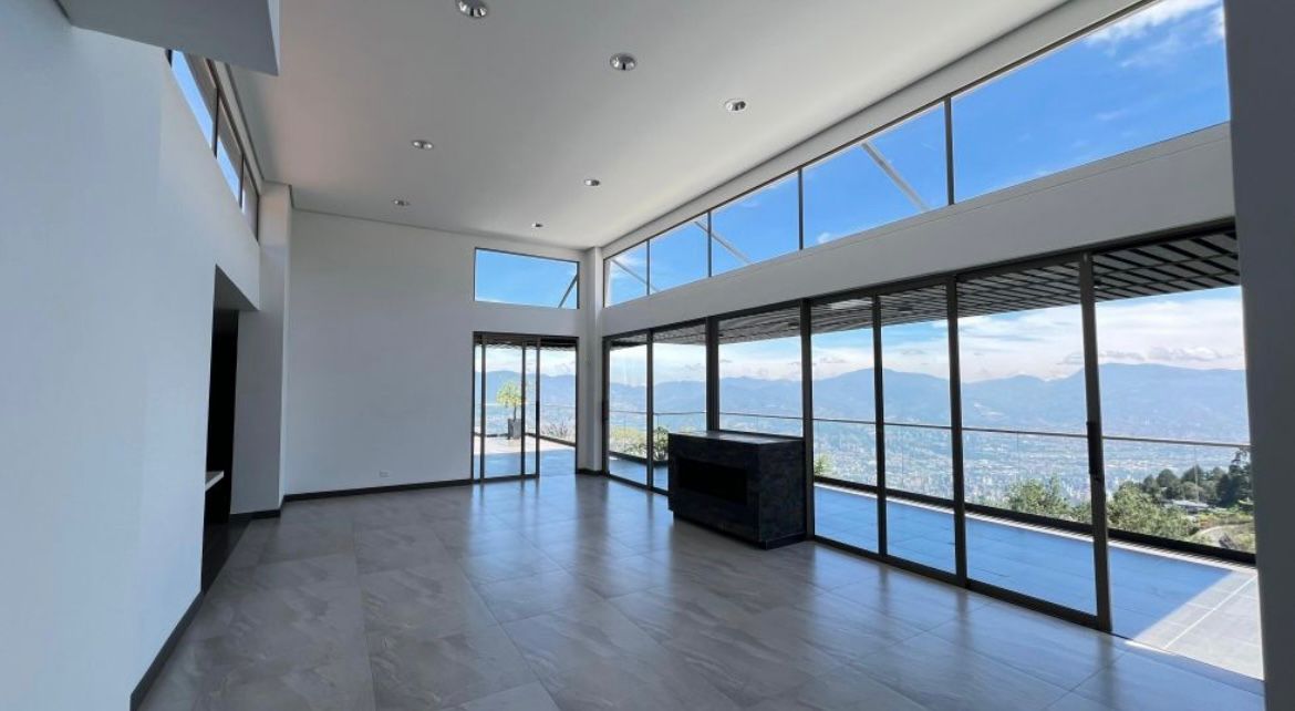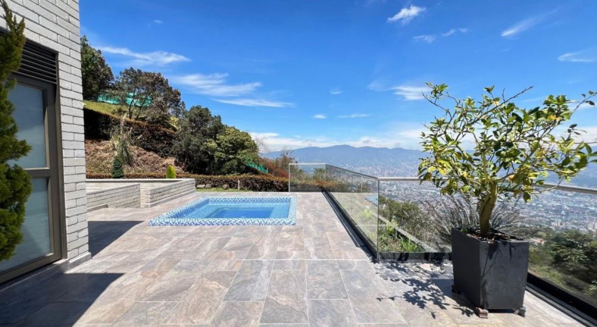 Venta casa de lujo sector las palmas con vista a la Ciudad a Medellín cuenta con un amplio espacio de dos niveles, terraza con vista panorámica hacia la ciudad, área del lote 3200 mts área construida 500 mts 2 niveles distribuido en 4 alcobas cada una con su respectivo vestier y baño. La habitación principal con jacuzzi, alcoba de servicio, biblioteca, cocina abierta integral, piso en madera, parqueadero para 4 vehículos, portería 24 horas, excelente rutas de trasporte, estación de servicio Texaco y mall comercial viva palmas.